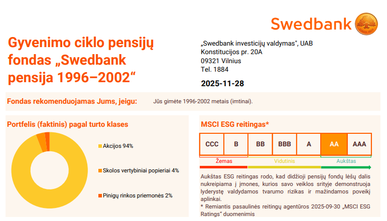 Užtat fondas turi AA ESG reitingą. Su tuo šio fondo klientus ir sveikinu.