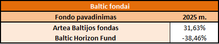 Įdomumo dėlei pasižiūrėjau, kaip 2025 m. sekėsi dviem fondams, investuojantiems į Baltic regioną.